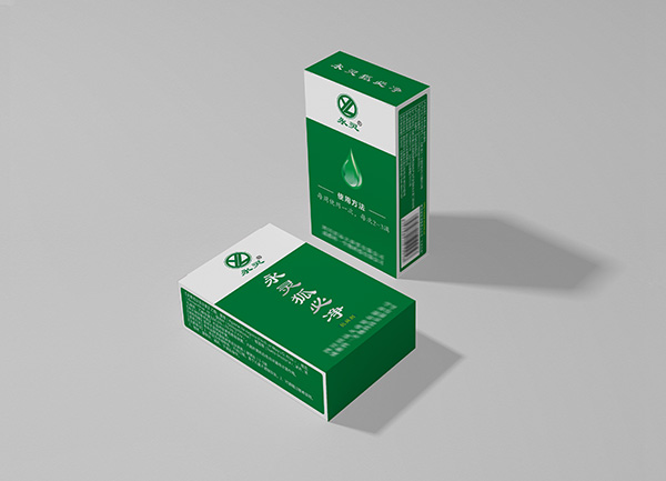 設計理念:本款紙盒屬于藥品類包裝,設計風格方面必須符合國家藥用要求、藥品生產質量管理規范的有關要求,包裝文字內容和圖片信息必須進行規范,封面以簡潔的文字突出主題,讓消費者可以清晰、直觀的了解產品用途。包裝結構方面也是選擇雙插扣的方式,這樣便于消費開啟簡單。