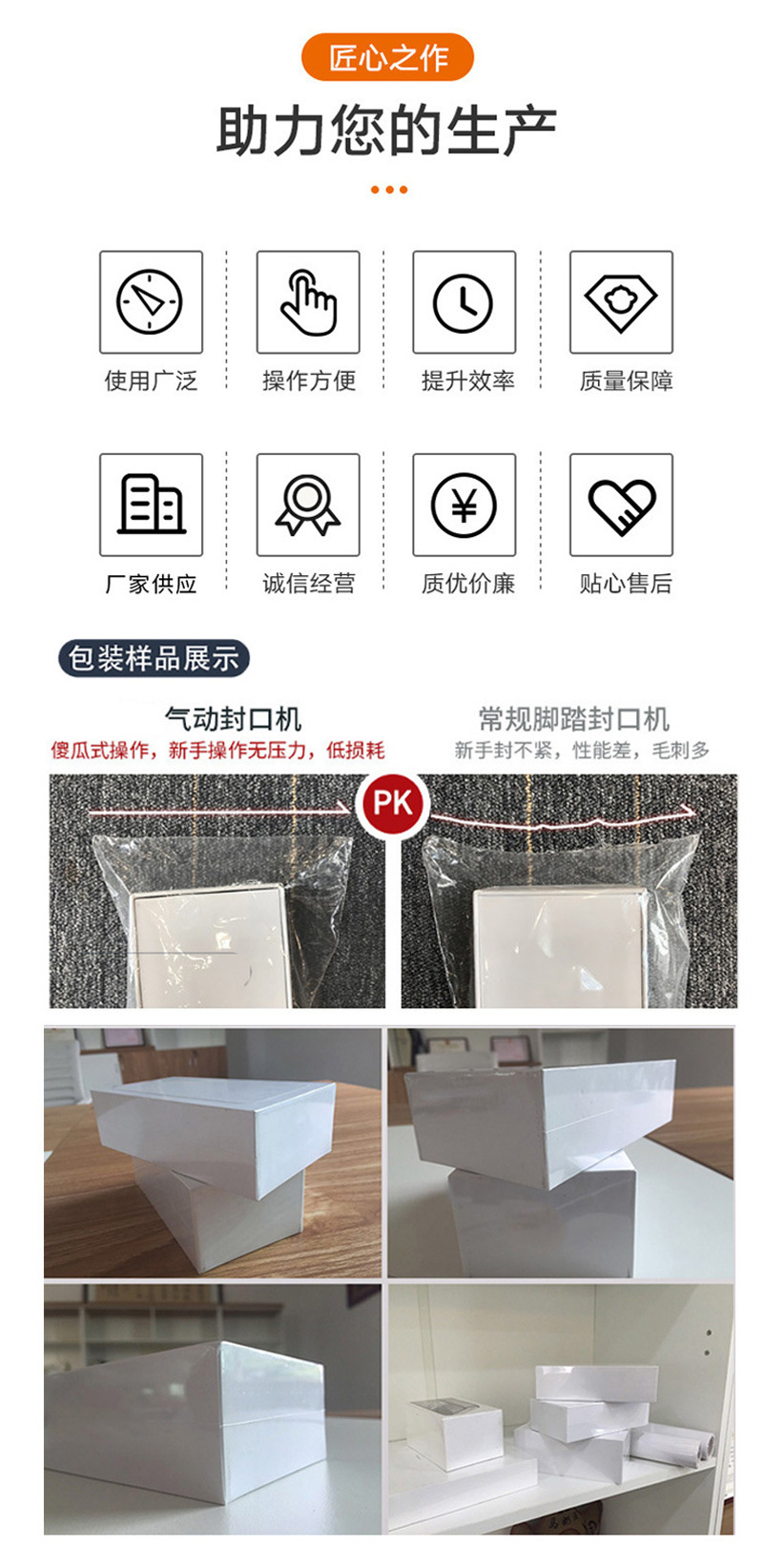 氣動封口機憑借穩(wěn)定的氣壓提供均勻的壓力,確保封口處的包裝材料充分融合,封口牢固,不易出現(xiàn)泄漏