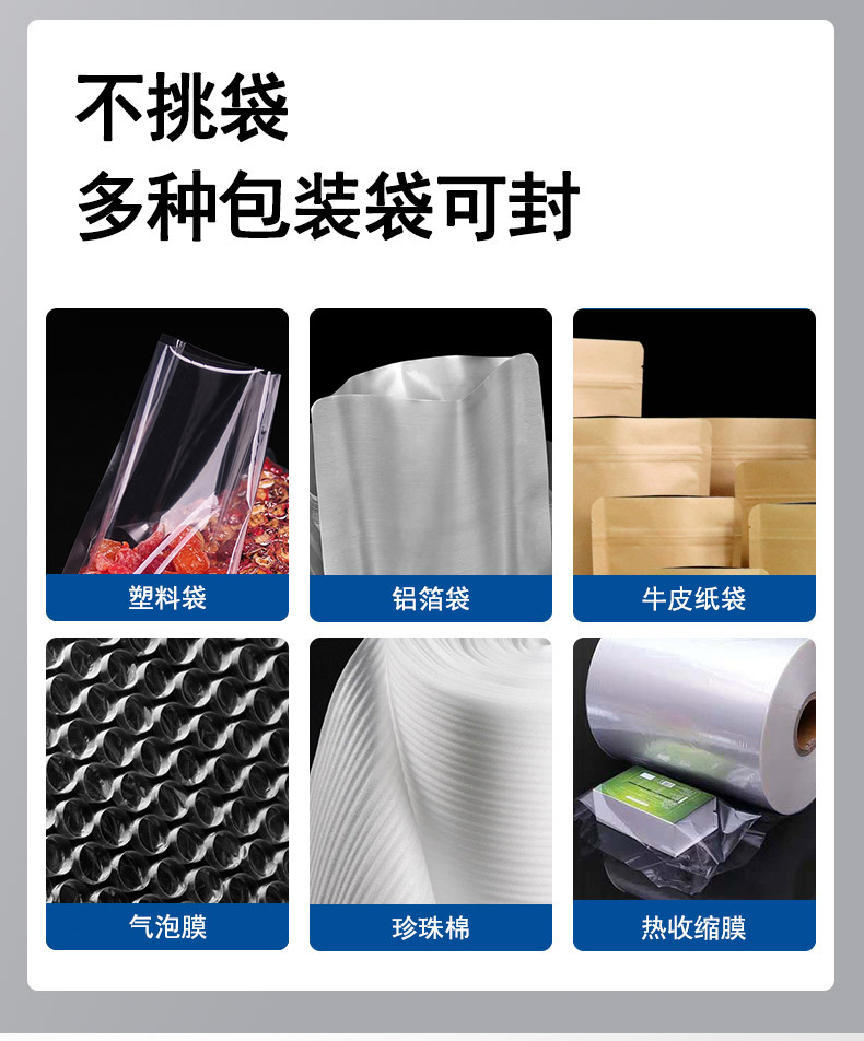 - 放置包裝袋:將需要封口的包裝袋開口對齊封口機的封口條,撫平袋口,避免出現(xiàn)褶皺,確保袋子放置平穩(wěn)、封口位置精準(zhǔn)。