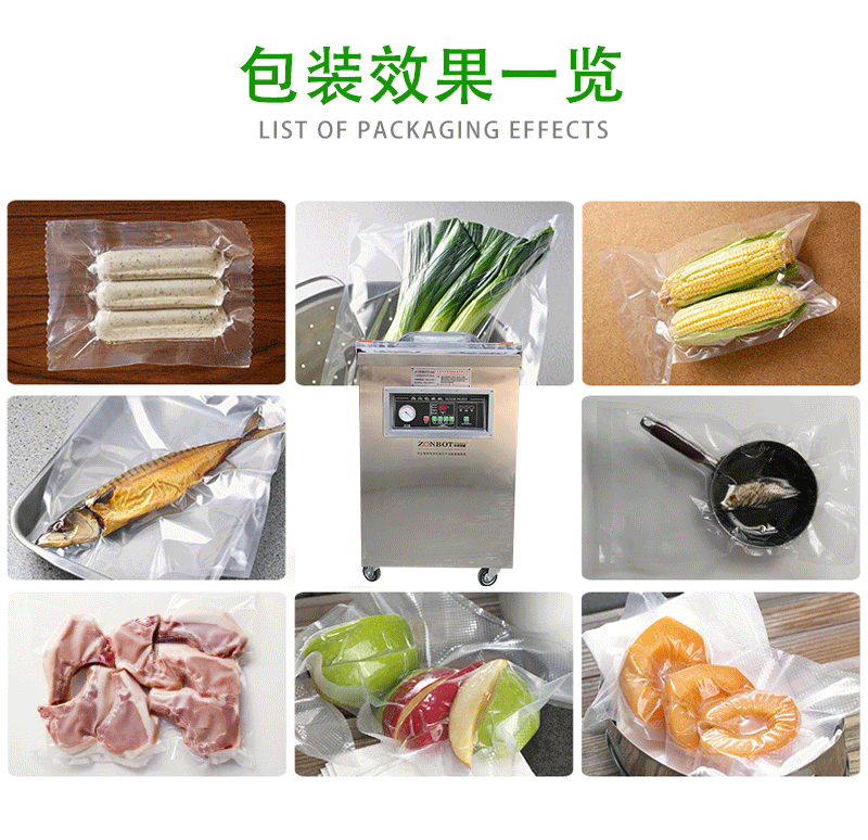 單室內抽真空包裝機可對酸菜、粽子、五金配件等產品抽真空封口包裝,密封包裝延長保質期
