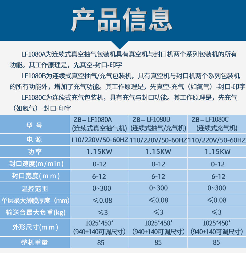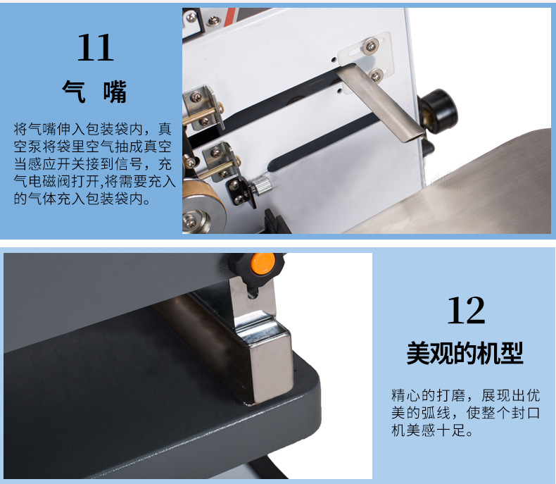 • 多功能集成:除單純真空包裝外,部分機型還具備充氣功能,在抽完真空后往包裝袋內充入氮氣、二氧化碳等惰性氣體,進一步提升產品保鮮、防氧化效果。