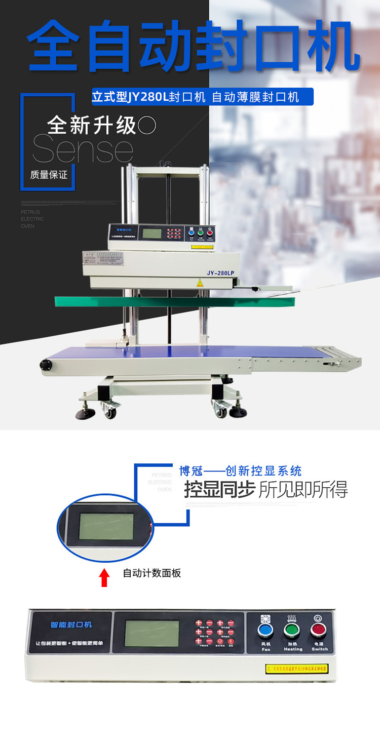 大型連續式封口機是工業包裝領域的 “主力軍”,憑借其高效、穩定的特性,為大規模生產提供有力支持,以下是詳細介紹:
