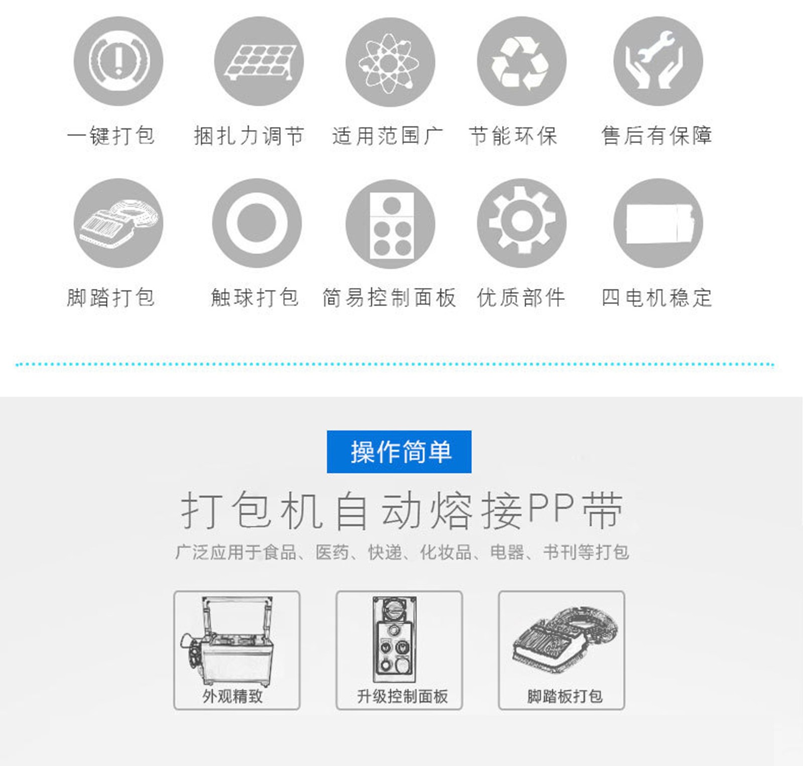 全自動打包機具有高效、穩定、精準等特點,廣泛應用于以下行業或場景: