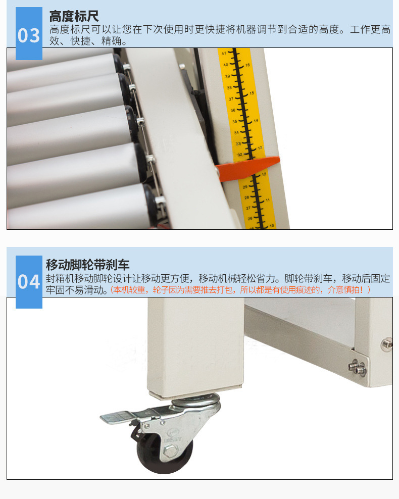 - 升降機構:升降機構故障,不能準確將紙箱托起至合適高度,膠帶分配器與紙箱上表面無法良好對齊,致使膠帶粘貼位置過高或過低,影響封箱效果。若升降過程不平穩,紙箱晃動,也會造成膠帶粘貼歪斜。
