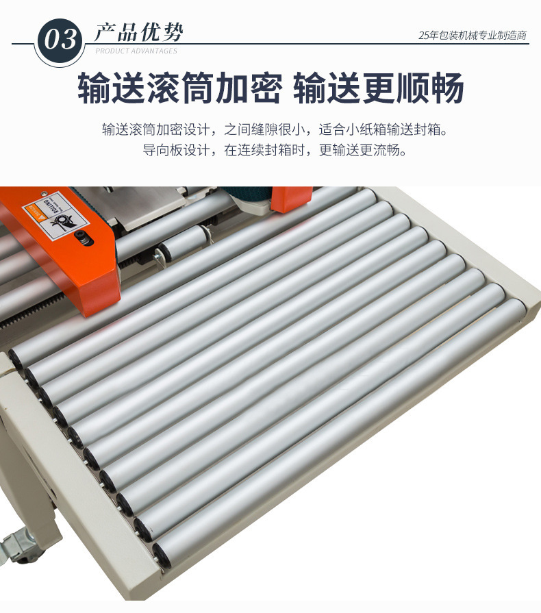 - 壓輥:壓輥表面有污垢或磨損不均勻,在壓實膠帶時,無法使膠帶全面緊密貼合紙箱,部分區域密封不牢,易在運輸中開裂。壓輥壓力調節不當,壓力過小,膠帶與紙箱粘貼不緊;壓力過大,可能損壞紙箱表面或使膠帶拉伸變形,同樣影響封裝質量。