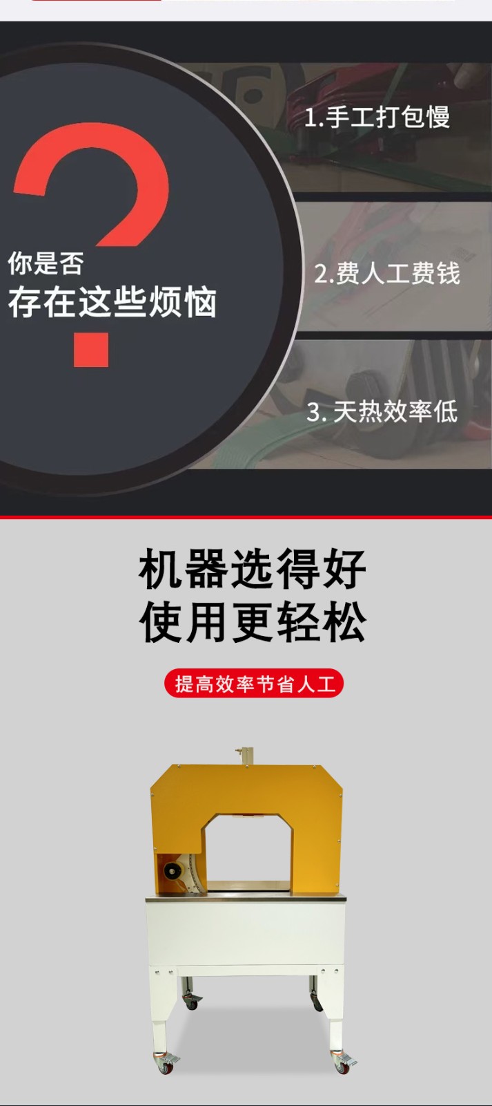 - 適用場(chǎng)景:適用于中等規(guī)模的生產(chǎn)企業(yè),在一些生產(chǎn)環(huán)節(jié)中,物體的放置和取下仍需要人工操作,但膠帶的供給和切斷等過(guò)程由設(shè)備自動(dòng)完成,能夠在一定程度上提高包裝效率,同時(shí)保持一定的靈活性。