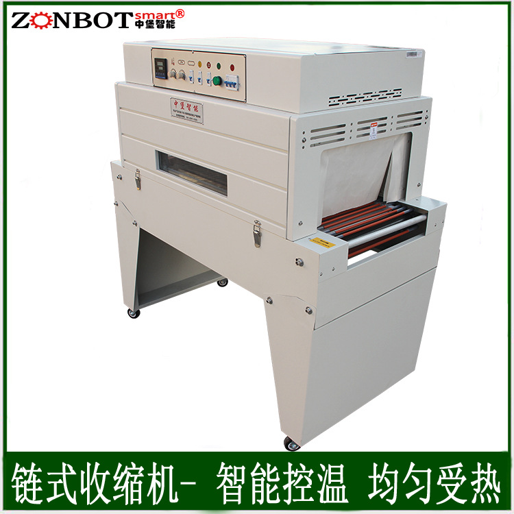 工作時,產(chǎn)品放置在鏈條上,隨著鏈條的移動進(jìn)入加熱區(qū)域。加熱區(qū)域產(chǎn)生高溫,使包裹產(chǎn)品的熱收縮膜受熱收縮,從而緊密貼合在產(chǎn)品表面,達(dá)到包裝的目的。