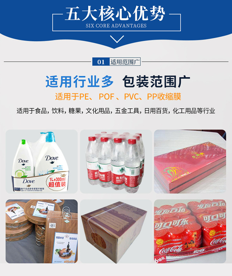 - 兼容多種包裝膜:可使用多種類型的熱收縮膜,如 PVC、POF、PE 等,企業可根據產品特性、包裝成本和市場需求選擇合適的膜材。