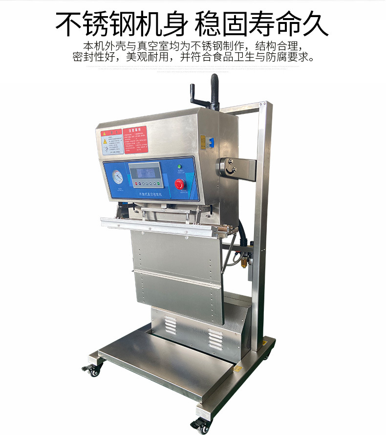 立式外抽真空包裝機除了在食品肉類的應用,還可以用于化工產品、紡織品、五金制品等的包裝,滿足不同行業的包裝需求