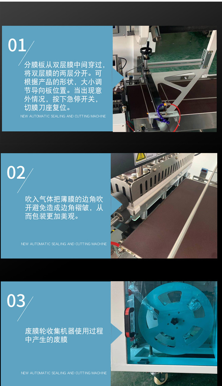 全自動封切機具有自動輸送、封口、切斷、收縮等功能。能精準完成包裝流程,保證包裝的美觀和密封性