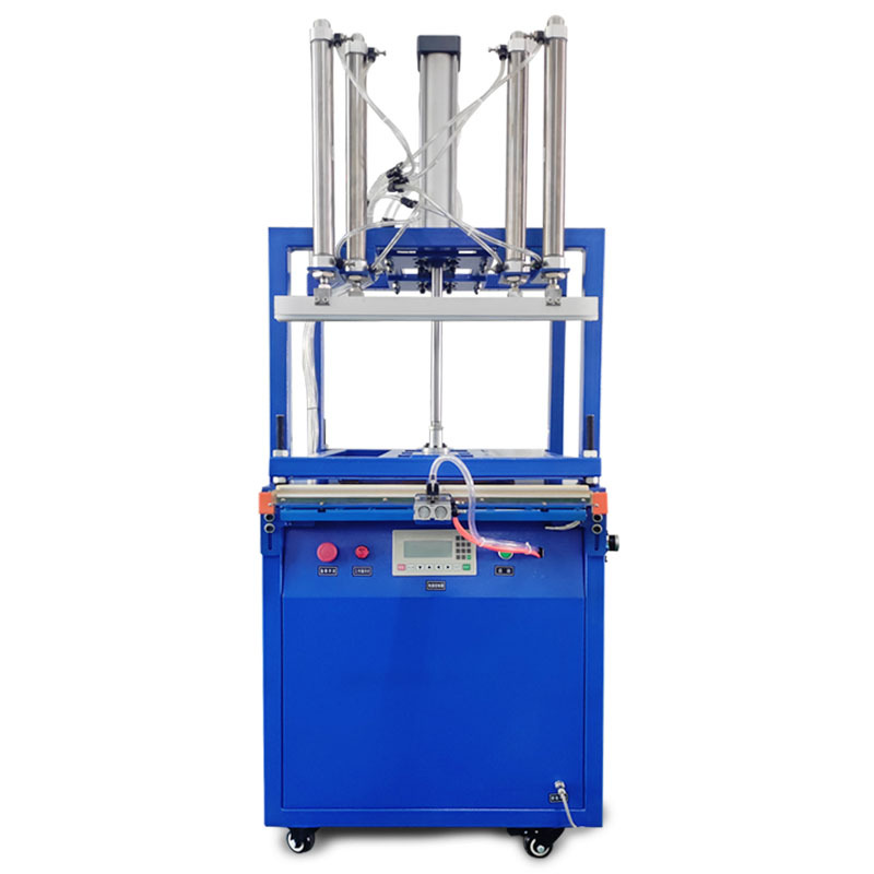 通過氣缸或液壓裝置壓縮產(chǎn)品,將包裝袋內(nèi)的空氣排出去,使包裝袋內(nèi)部形成 “偽真空狀態(tài)”,從而裹緊產(chǎn)品或包裝件 12。