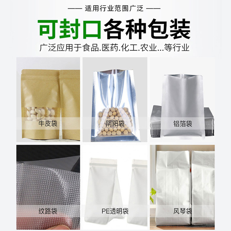 • 封口尺寸:封口的長度和寬度越大,每次封口所需的時間就越長,從而影響工作效率。例如,對大尺寸的包裝袋進行封口,封口機的壓頭需要覆蓋更大的面積,加熱和施壓的時間會相應增加。
