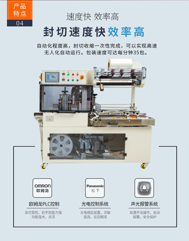 全自動(dòng)封切機(jī)具有密接功能,專為包裝小產(chǎn)品設(shè)計(jì)。廣泛應(yīng)用于軟件、食品、化妝品、印刷、制藥及地板、陶瓷、飲料、五金等行業(yè)的特大批量收縮包裝。