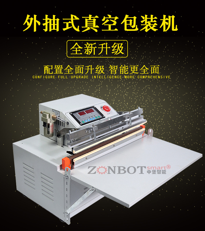 真空包裝機能夠自動抽出包裝袋內的空氣,達到預定真空度后完成封口工序。亦可再充入氮氣或其它混合氣體,然后完成封口工序。真空包裝機常被用于食品行業,因為經過真空包裝以后,食品能夠抗氧化,從而達到長期保存的目的。
