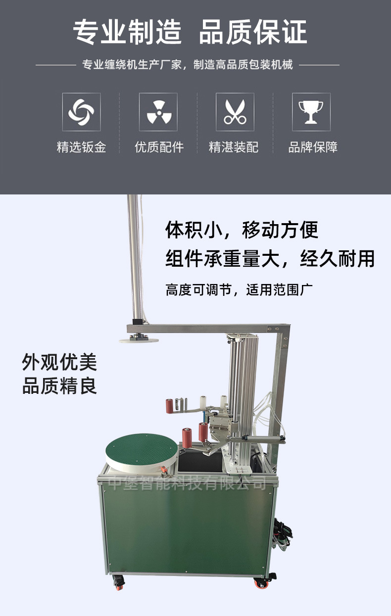 膠帶纏繞機,?也稱為自動裹包機,?是包裝機械中不可或缺的設備,?主要用于適應貨物集裝化儲存、?運輸及機械化裝卸作業的包裝要求。?它廣泛應用于外貿出口、?食品飲料、?制灌、?造紙、?染料、?塑膠化工、?玻璃陶瓷、?機電鑄件等產品的集裝成本提高生產效率,?同時防止貨物在搬運過程中的損壞,?起到防塵、?防潮及保潔作用。?特別適用于大量迅速運輸或儲存、?紙箱、?瓶裝物品或大件貨品,?能夠提高物流效率、?減少運輸過程中損耗,?具有防塵、?防潮、?降低包裝成本等優點。?此外,?膠帶纏繞機還特別適用于托盤裝運的貨物包裝,?如用于大宗貨物的集裝箱運輸及散件托盤的包裝等,?廣泛應用于玻璃制品、?五金工具、?電子電器、?造紙、?陶瓷、?化工、?食品、?飲料、?建材等行業