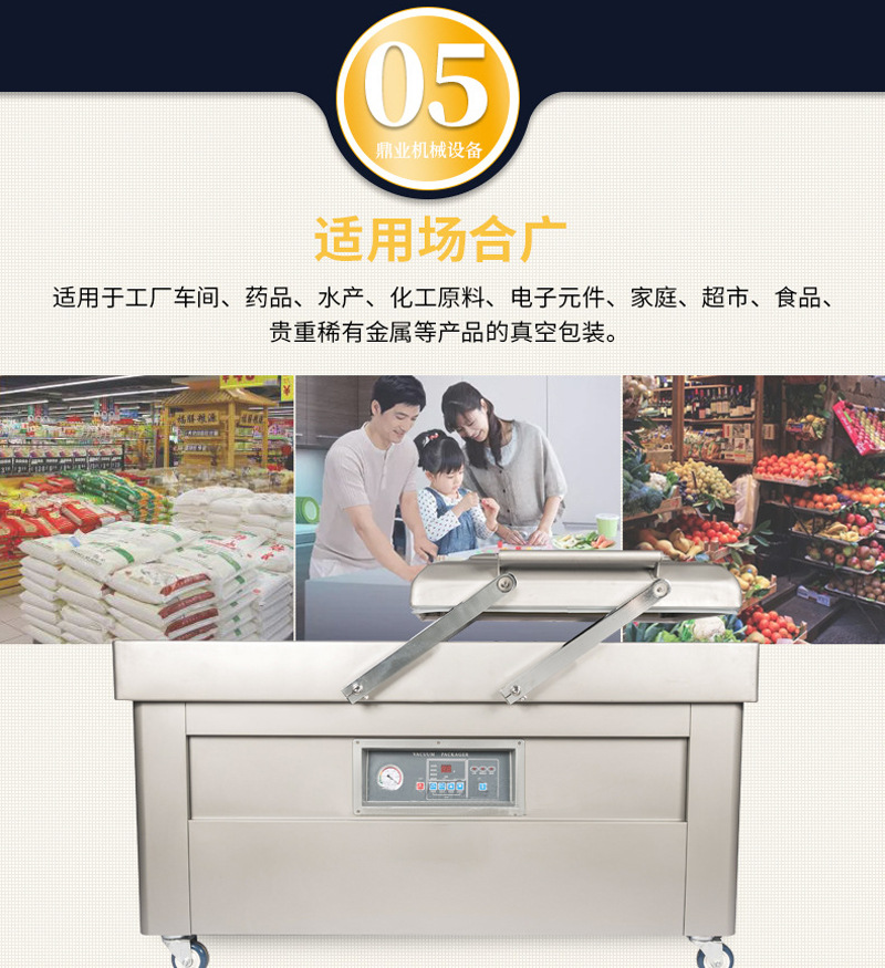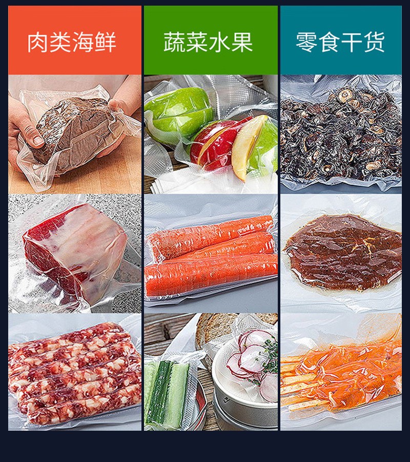 - 不僅適用于食品行業,如肉類、水果、蔬菜、熟食等的包裝,還廣泛應用于電子、化工、五金等行業,對各類產品進行真空保護包裝。