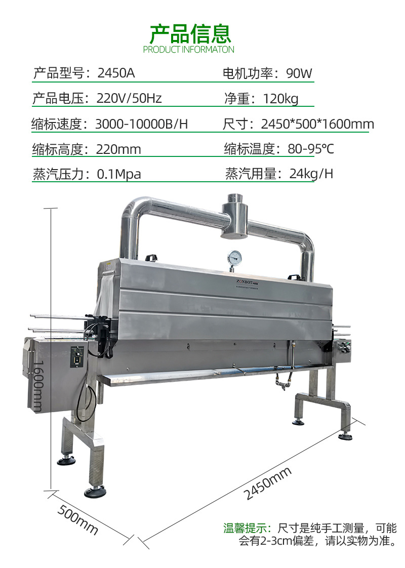 - 節能環保:相比其他收縮方式,蒸汽收縮機使用水作為加熱介質,更加節能環保。