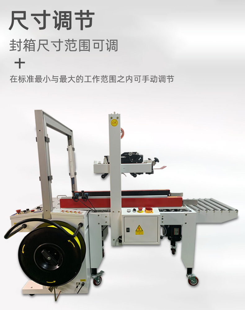 總之,封箱打包機以其高效、穩(wěn)定、精準的包裝性能,為企業(yè)的生產和物流環(huán)節(jié)提供了有力的支持。在使用過程中,應注意正確操作和定期維護保養(yǎng),以確保設備的正常運行和延長設備的使用壽命
