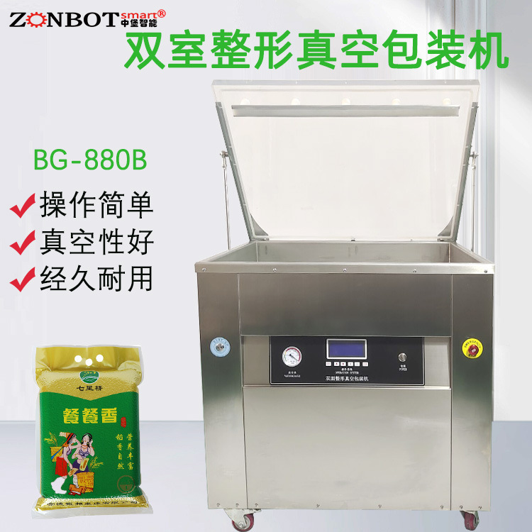 大米整形真空包裝機具備獨特的整形模塊。在包裝過程中,這個模塊可以對大米進行整理,使大米在包裝袋內排列更加整齊、緊密。通過物理擠壓或者特定的振動方式,讓大米顆粒之間的間隙減小,呈現出規則的形狀,從而提升包裝的美觀度。