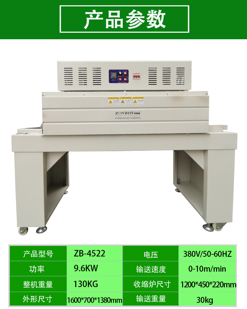 - 輸送帶:負責將待包裝物品平穩(wěn)地輸送通過各個工作區(qū)域,如套膜區(qū)、加熱區(qū)等。輸送帶的速度通常是可調(diào)節(jié)的,以便適應不同的包裝速度要求。