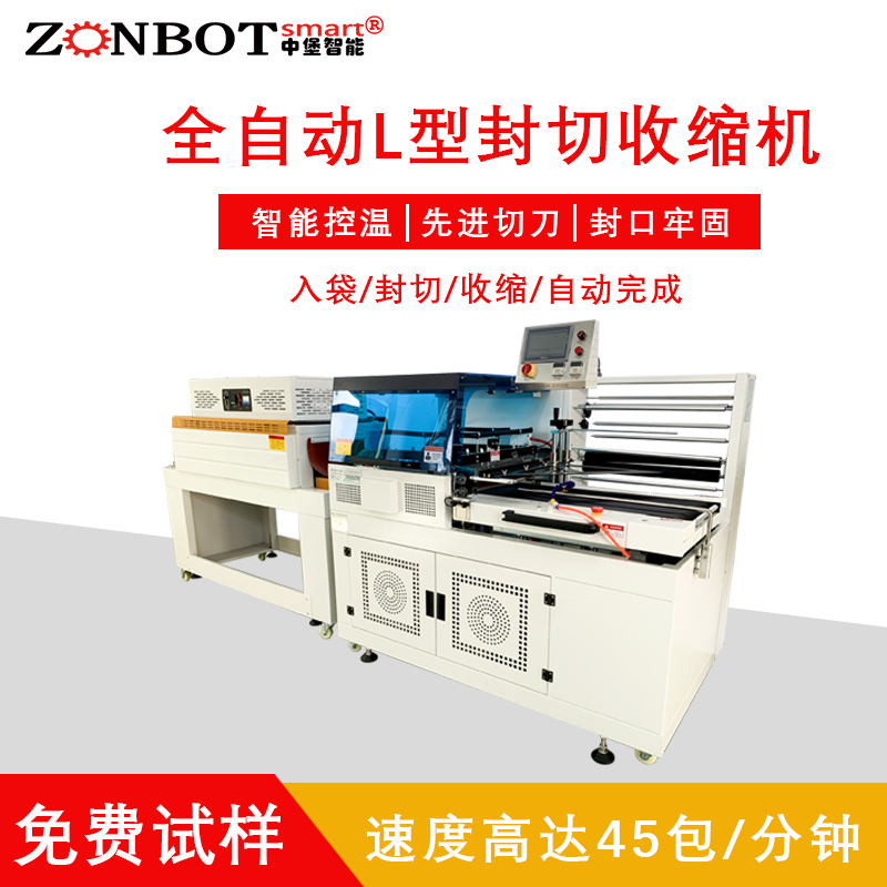 全自動 L 型封切收縮機是一種用于包裝的自動化設備。它主要用于對產品進行套膜、封切和收縮包裝。其名稱中的 “L 型” 是指封切方式,封切刀呈 L 型,能夠對薄膜進行直角封切,使包裝更加規整。 工作時,它先將薄膜圍繞產品形成包裹狀,然后在合適的位置進行封切,將薄膜切斷并密封,形成一個初步包裝。接著,通過熱收縮通道使薄膜緊緊地貼合在產品表面,達到緊致、美觀的包裝效果。 工作原理 套膜環節:產品通過輸送裝置進入包裝區域,薄膜從薄膜卷筒上被拉出,在機械裝置的引導下,圍繞產品形成一個筒狀包裹。這一過程可能通過光電感