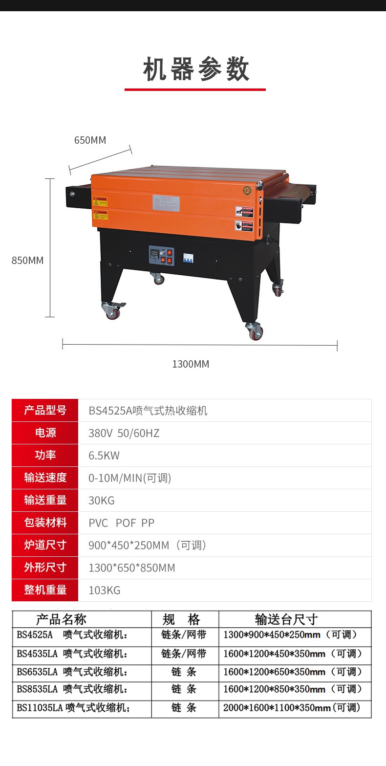 - 能夠實現均勻、緊密的包裝效果。熱空氣的均勻噴射確保了薄膜在產品各個部位的收縮程度一致,使得包裝后的產品外觀更加美觀、整潔。而且,緊密貼合的薄膜可以有效地保護產品免受灰塵、水分等外界因素的侵害。例如,在包裝電子產品時,良好的收縮包裝可以防止靜電吸附灰塵,保護產品內部的電子元件。