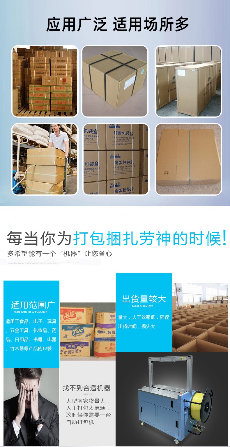 - 自動上帶:機器啟動后,會自動從打包帶卷中抽出打包帶,并將其傳送到預定的位置,準備進行打包。這個過程無需人工干預,大大提高了工作效率。
