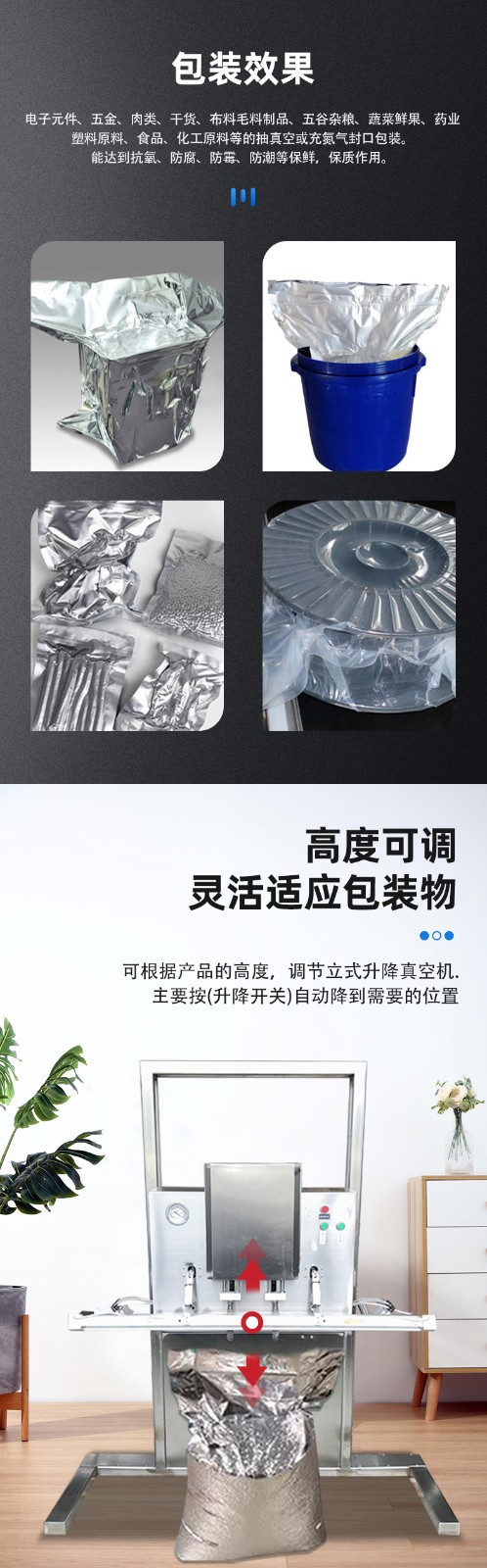 • 包裝效果好:能夠實現(xiàn)高效的抽真空和密封功能,使包裝內的物品處于真空狀態(tài),有效防止物品受潮、受腐蝕氣體及鹽霧侵蝕,延長物品的保質期和使用壽命2