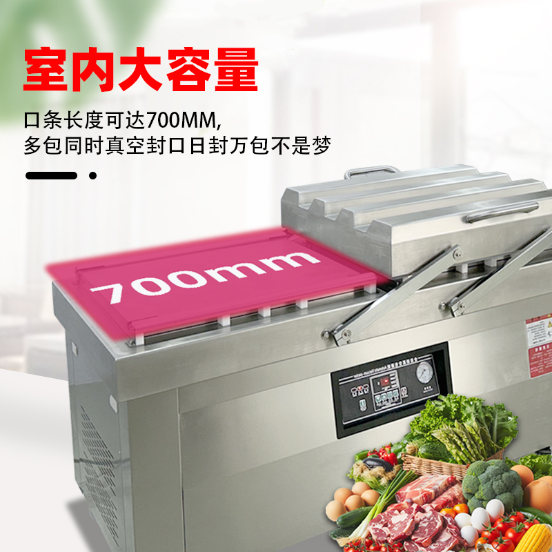 雙室真空包裝機通過 “雙真空室輪換作業(yè)” 實現(xiàn)抽真空與裝袋無縫銜接,核心是利用兩個獨立真空室的 “時間差并行操作”,讓設(shè)備在同一周期內(nèi)同時完成 “抽真空密封” 和 “人工 / 自動裝袋”,徹底消除單室機型 “抽真空時無法裝袋” 的等待間隙,大幅提升作業(yè)效率。其具體運作邏輯和優(yōu)勢可拆解為以下 3 點: