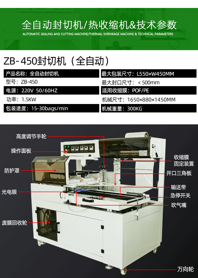 ZB-450封切機 自動套袋封切包裝機 熱縮膜包裝機