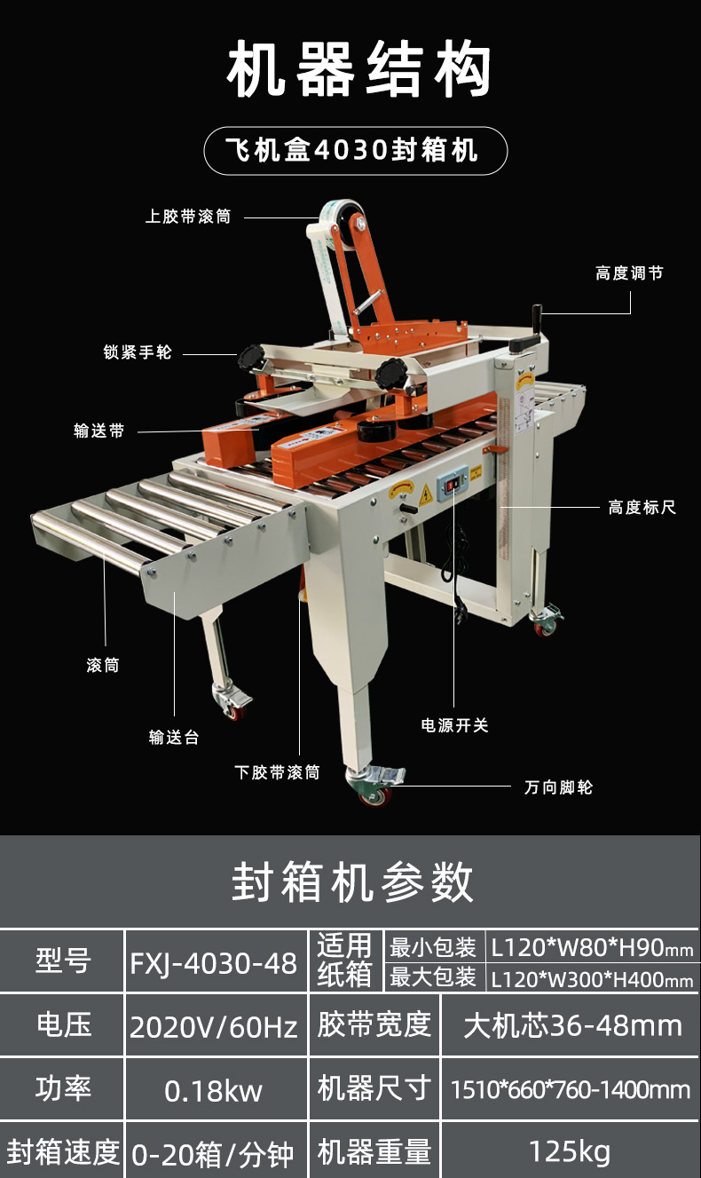 4030X全自動紙箱膠帶封箱機(jī)郵政紙箱包裝機(jī)膠帶封箱透明膠帶打包