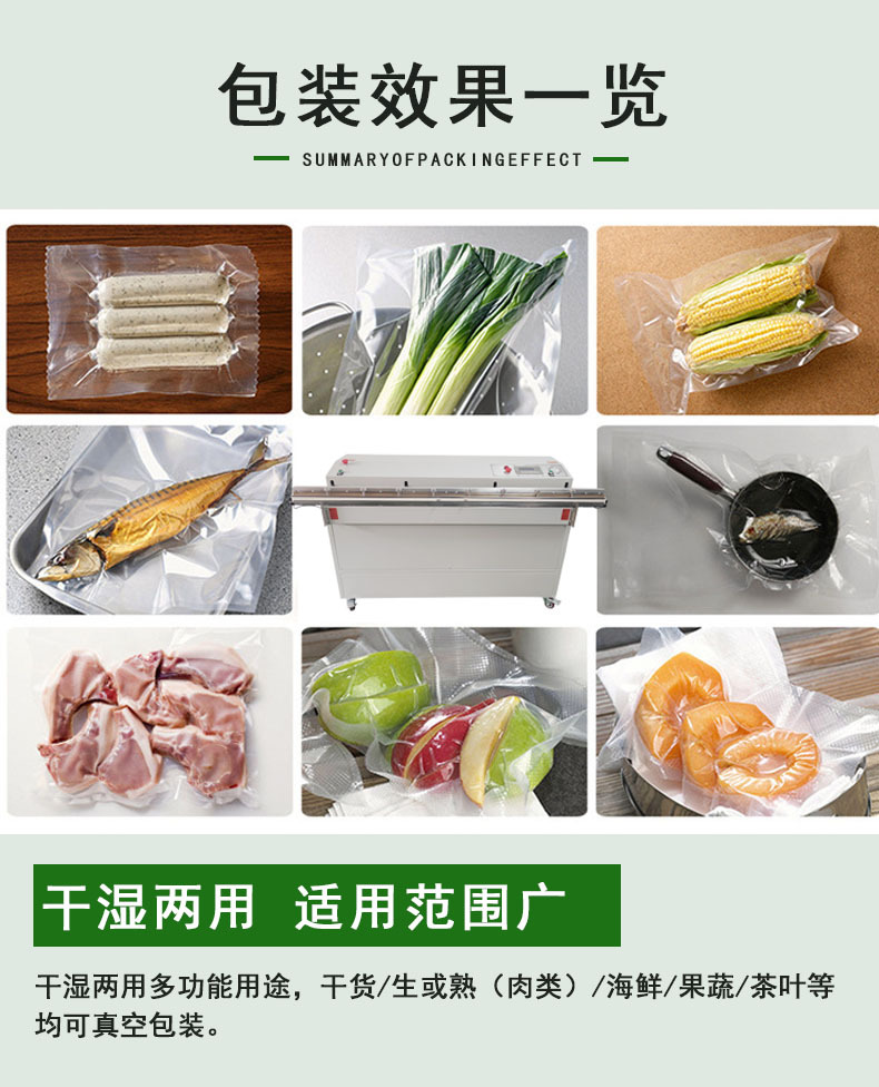 真空包裝機品種繁多,在選用時應(yīng)著重考慮下列因素。 (1)包裝速度。出于提高生產(chǎn)效率的考慮,可選用雙室或多室的真空包裝機,以提高整個生產(chǎn)的進度。 (2)被包裝物品是否需要充填其他保護性氣體。可選擇帶有充氣裝置的多功能真空包裝機。 (3)被包裝物品真空度的要求。如包裝物品需要在真空度較高的條件下才能完好保存,則需選擇腔式真空包裝機。 (4)被包裝物品成分狀態(tài)對真空包裝機的要求。