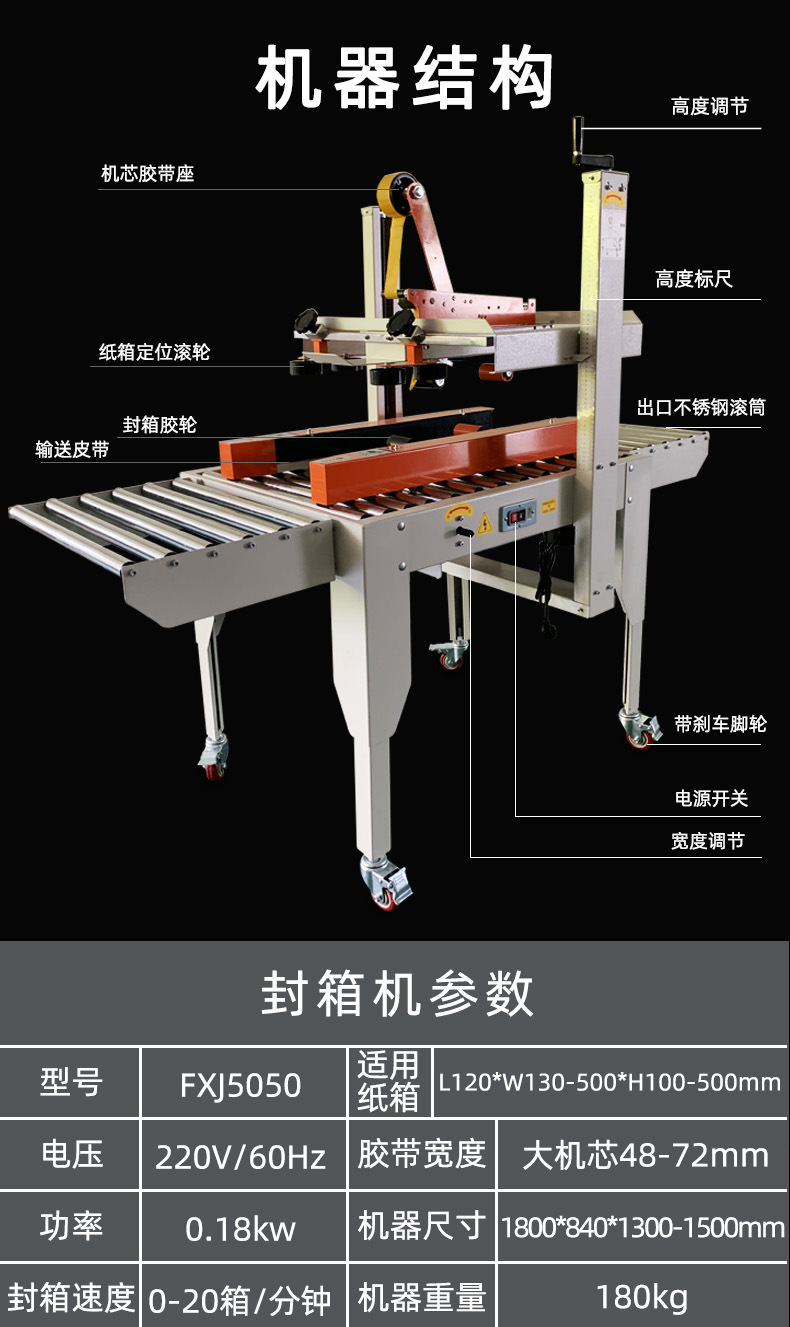 為您介紹一款功能強大、操作簡便的封箱機。首先,這款封箱機采用了先進的自動控制技術,只需通過操作面板上的按鈕,即可實現封箱動作,無需繁瑣的操作步驟。同時,該封箱機還具備多種封口方式,如熱熔封口、膠帶封口等,滿足不同產品的需求。