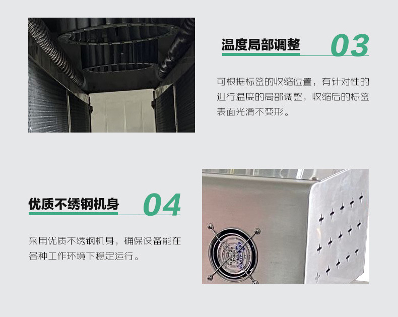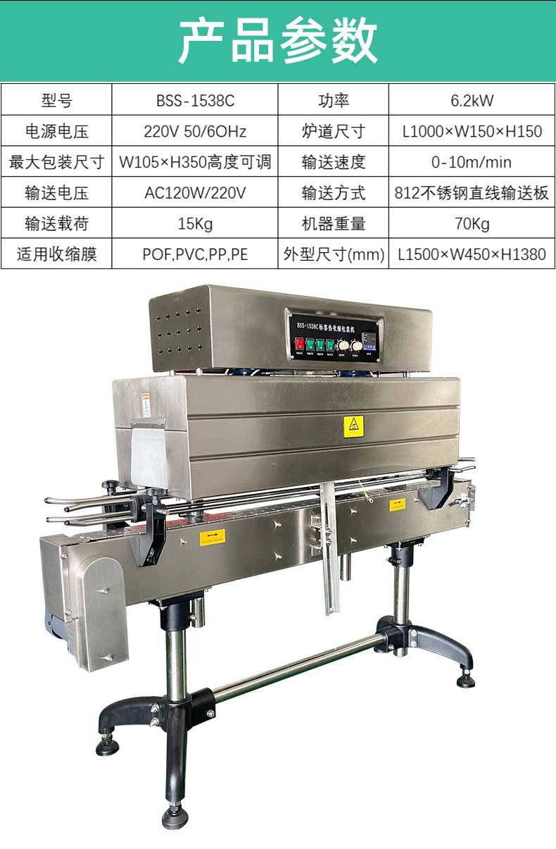 熱收縮機(jī)的主要應(yīng)用領(lǐng)域是食品、飲料、醫(yī)藥和化工行業(yè)。在這些行業(yè)中,熱收縮機(jī)可以用于各種包裝的收縮,如瓶裝、罐裝、袋裝等 熱收縮機(jī)的功能和工作原理 熱收縮機(jī)具有送料、襯料、封切、收縮、冷卻、定型的全自動(dòng)功能。熱收縮機(jī)采用國(guó)際先進(jìn)的薄膜恒溫?zé)岱饧夹g(shù),封口清晰牢固