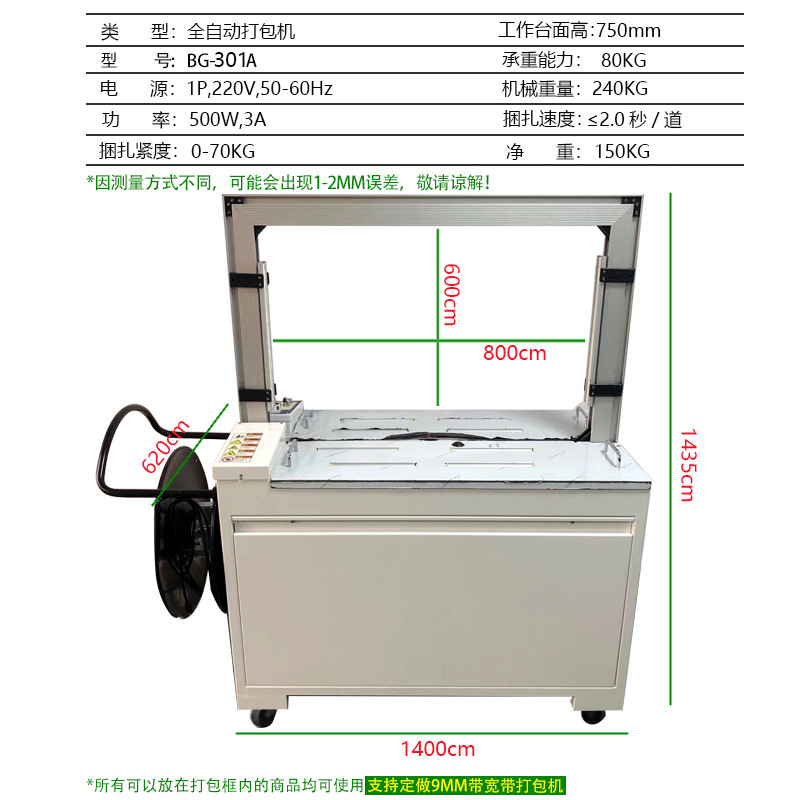 不同類型的全自動打包機適用于不同的場景和物品。比如,有的適用于紙箱打包,有的適用于塑料制品打包等。